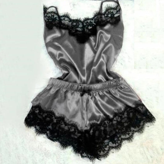 Dames sexy pyjama set van satijn en kant • Elegante mouwloze top en korte broek • Nachtpyjama set • Ondergoed